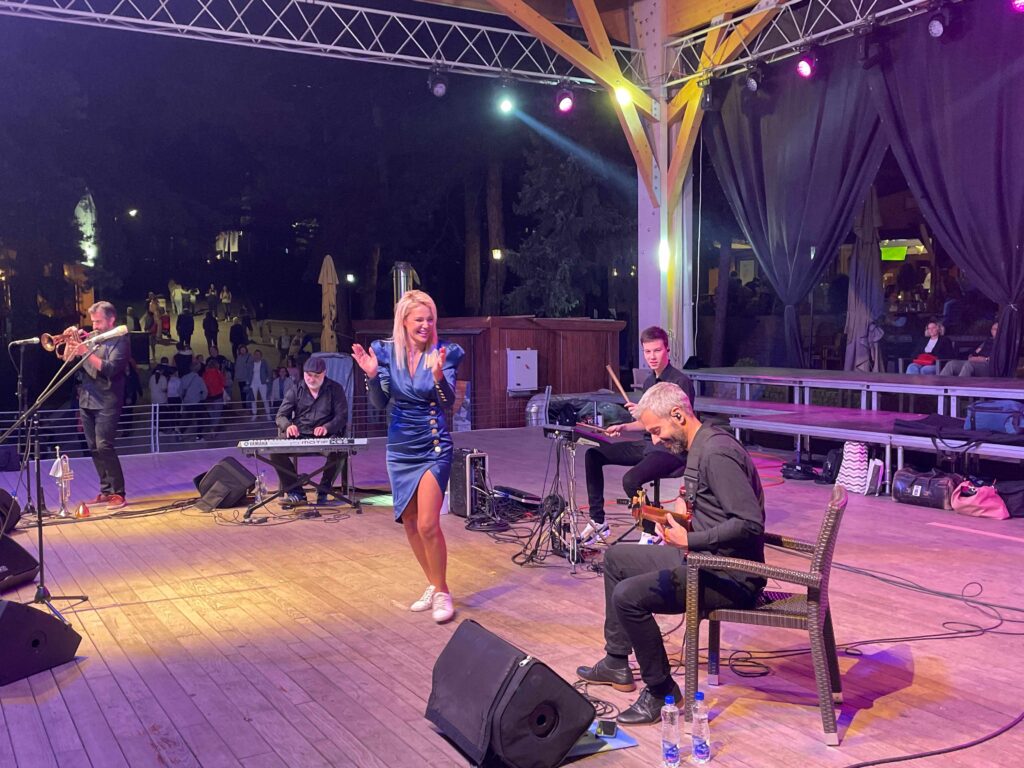 Успешна џез певачица почела је златиборски наступ најновијом песмом И обрадом „Лето је“. Уследиле су песма „Београде“, „Хир“, и велики хит „Само да ми је“, а онда нас је Лена обрадовала са две изворне песме које је отпевала у џез маниру „Запевала сојка птица“ и „Густа ми магла“.