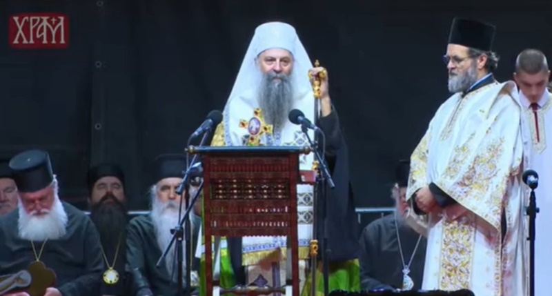 „Ми никоме не намећемо наш начин живота и не желимо да нам било ко, са било које стране света долази намеће свој поглед на свет и своје вредности. Нећемо да нам нико намеће своја правила, свој поглед на свет, нећемо да нам било ко каже шта ми треба да будемо, јер нама је мера Божија реч, заповести његове“, рекао је патријарх Порфирије, обраћајући се након молебана испред Храма Светог Саве.