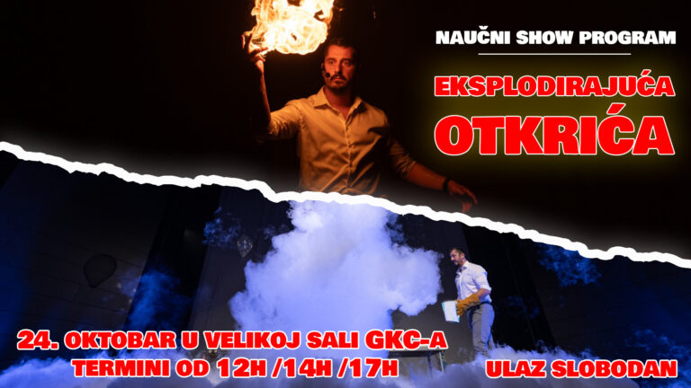 У сарадњи са организацијом “Покренимо Србију”, под покровитељством Центра за промоцију науке од понедељка је у Великој сали Градског култунрог центра постављен Палентаријум, а на истом месту сутра у три термина биће приређен научни шоу “Експлодирајућа открића”. Према речима директора Градског културног центра Филипа Баралића улаз на овај догађај у терминима од 12, 14 и 17 часова је бесплатан, а првенствено је намењен ученицима основних и средњих школа.