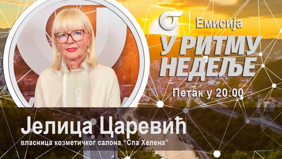 И ове шесте по реду сезоне емисије „U ritmu nedelje„ бавићемо се темама из разних области живота, а угостићемо и занимљиве људе нашег краја. У овом издању емисије гошћа је Јелица Царевић, власница Козметичког салона „Хелена“ која је у овом месецу прославила 40 година успешног рада. О томе како опстати и задржати квалитет и о темама из области козметикологије, сазнаћете у петак од 20 часова.